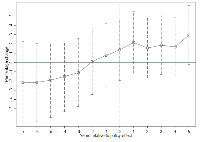 第二,虽然这个只看pre trend,但post trend也是要看的。个人认为没有通过,政策效应不明显。