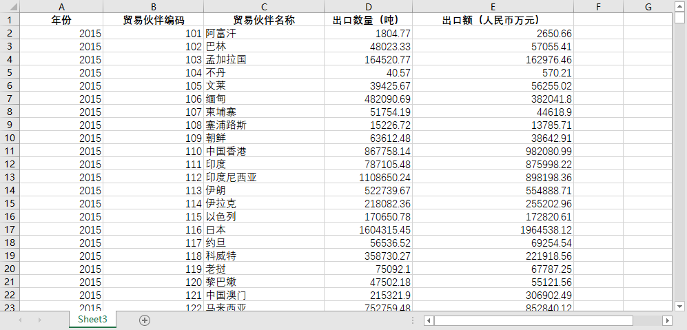 数据范围:分别明细到 全球世界各国 的贸易数据,含进出口数量、金额