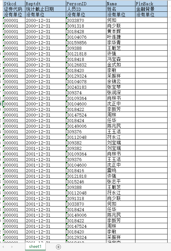 FinBack [金融背景] - 1=监管部门,2=政策性银行,3=商业银行,4=保险公司,5=证券公司,6=基金管理公司,7=证券登记结算公司,8=期货公司,9=投资银行,10=信托公司,11=投资管理公司,12=交易所,98=其他,99=无金融背景。该字段历史数据起始2008年。
