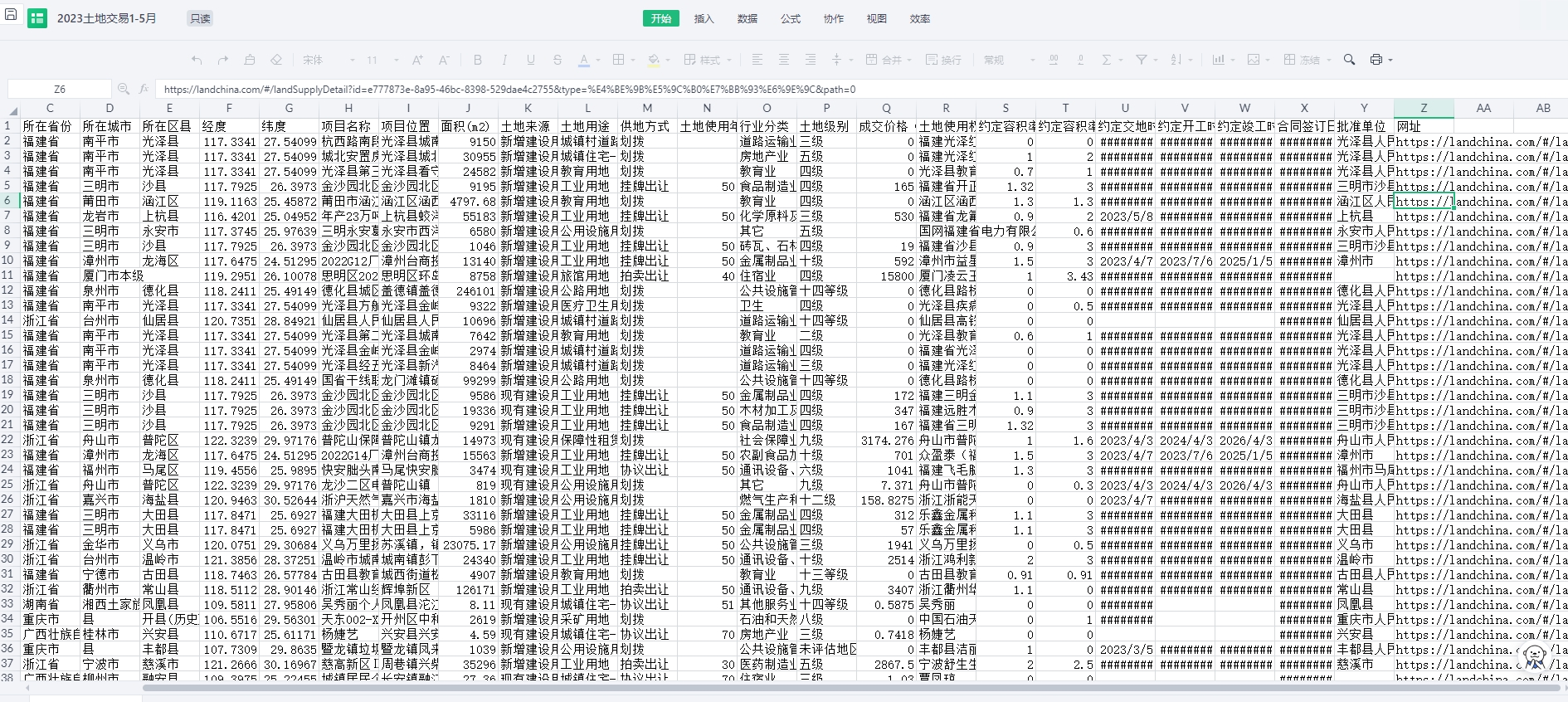 中国土地市场网是一个汇集土地市场信息的平台,其中有大量的土地出让数据可供挖掘和分析,本次数据为土地出让的微观数据,数据量300万+条。这些数据展现了土地交易的实际情况,包括该地区土地出让的用途、面积、成交价等关键信息。这样的数据分析可以为研究者提供非常有价值的信息,各地区土地市场的供求关系、不同土地类型的价格趋势、土地发展模式的多样性,以及区域经济发展的潜在机会等等。通过深入挖掘和分析这些数据,研究人员可以更好地了解中国土地市场的发展和趋势,为政策制定者、投资者以及房地产从业者提供更为详实和准确的参考依据。