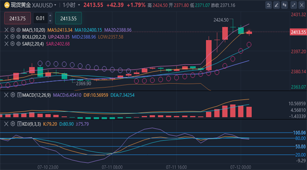 【黄金消息面分析】:周四(7月11日),受期待已久的住房成本放缓的推动,美国通胀率 6 月份普遍降温,并为美联储官员能够很快降息提供了另一份信心。现货黄金突破2410美元/盎司,自CPI公布后累涨逾30美元。