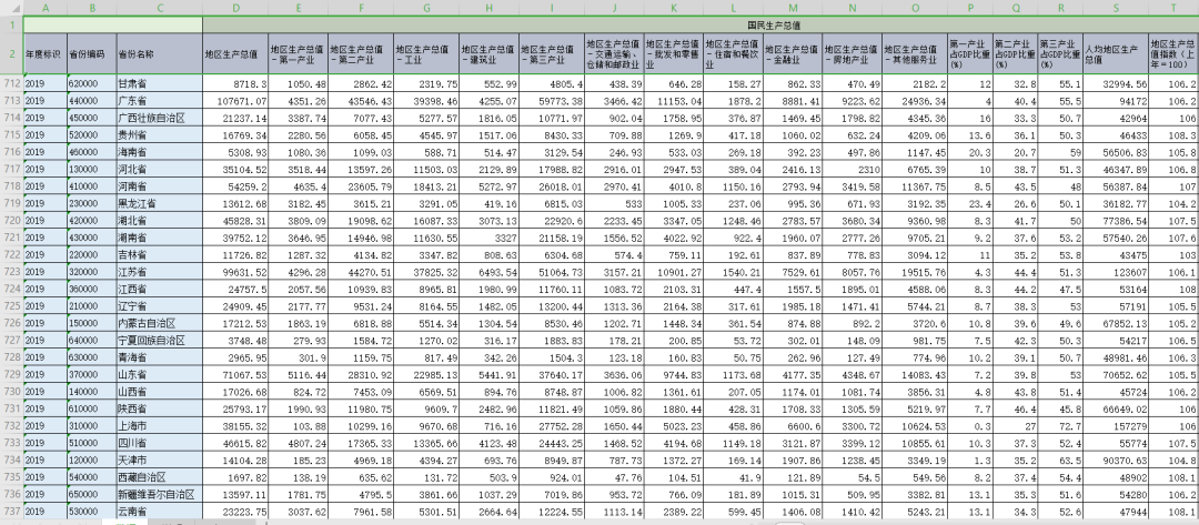 宏观经济数据是大家科研中经常需要用到的数据,包含内容非常广泛,今天就给大家分享一份1997-2019年各省主要统计指标数据汇总。