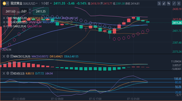 【黄金消息面分析】:在全球经济不确定性的背景下,黄金作为传统的避险资产,本周表现出了强劲的上涨势头。尽管面临高利率和通胀持续等不利因素,金价今年仍上涨了17%,显示出其作为避险资产的吸引力。本周,现货黄金价格连续第三周实现上涨,突破2400美元/盎司的重要心理关口,分析师预计金价可能创下历史新高。