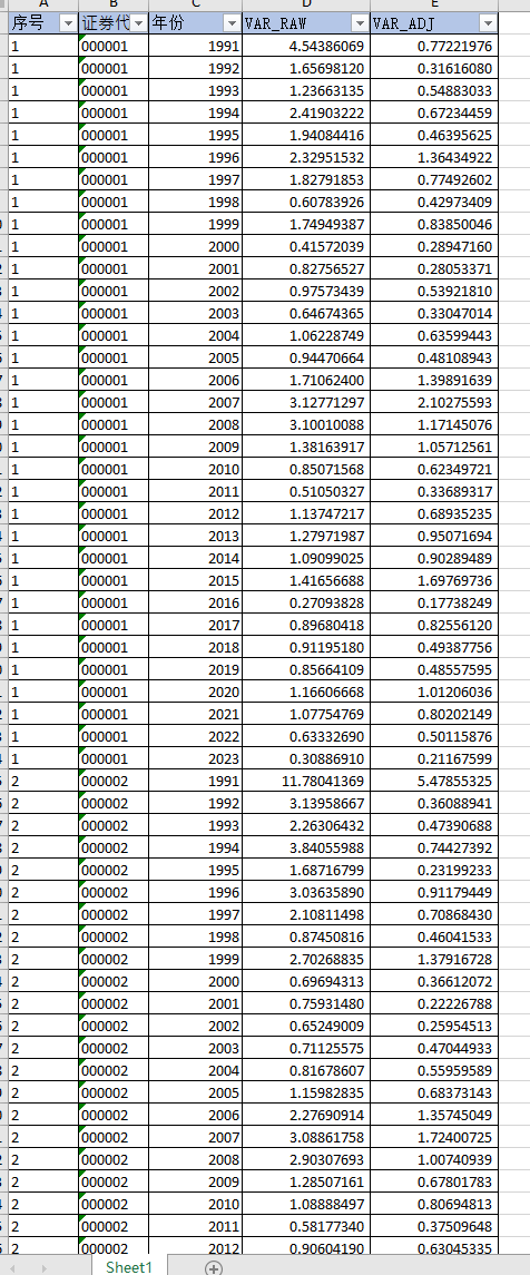 1990-2023年上市公司股价波动性VAR指标测算(原始数据+do代码+测算结果)