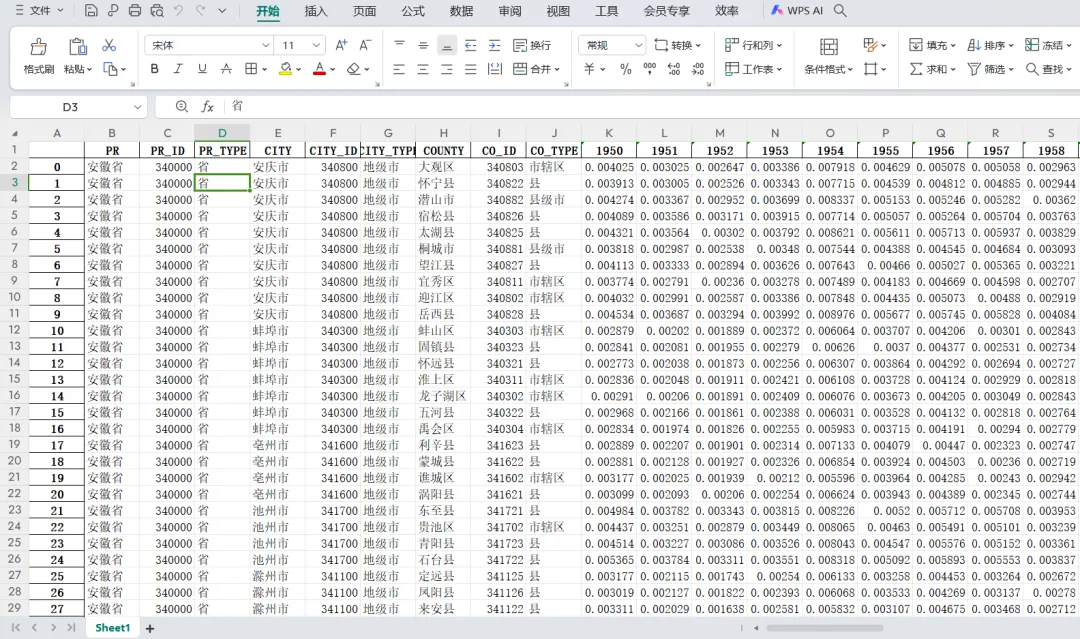 1950-2022全国各省、市、县逐年水文数据(降水量)