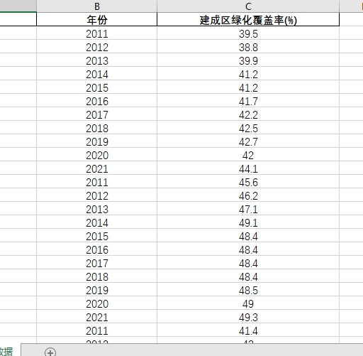 4、数据指标:建成区绿化覆盖率。