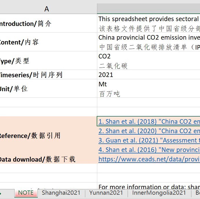 CEADS (1997-2021) 中国 分省份 分行业 二氧化碳排放数据清单