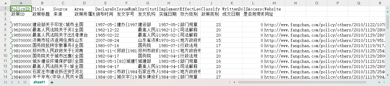 政策ID 政策标题 来源 政策所属地区 颁布时间 发文字号 发文机构 实施日期 效力级别 政策类别 成文日期 是否附带附件 网址