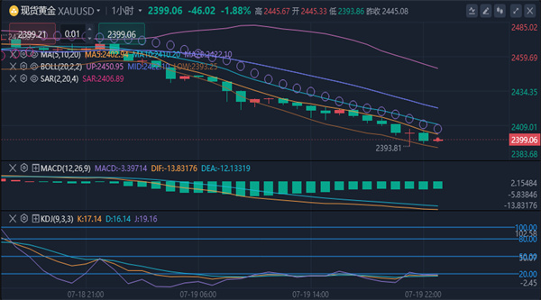【黄金消息面分析】:在周五的市场交易中,黄金价格经历了一次显著的回调,跌破了2400美元/盎司的重要心理关口。目前黄金交投于2395.97美元/盎司,日内暴跌约50美元,跌幅2.01%。消息面上,市场对美联储9月份降息的预期高达98%,这在一定程度上支撑了黄金价格。美联储主席鲍威尔最近的发言也增强了市场对通胀回归目标的信心。如果下周公布的美国GDP数据显示经济活动放缓,金价可能会得到提振,并有可能回升至近期的高点。