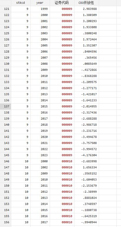 借鉴 Datta 等 研究对 CEO 开放性进行测量,具体计算过程如下: