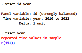求助!我想对面板数据中每个地区都单独做时间序列ARIMA模型分析,但无法在stata中按各地区2000-2022年设定为单独时间序列做分析,求助各位大神。