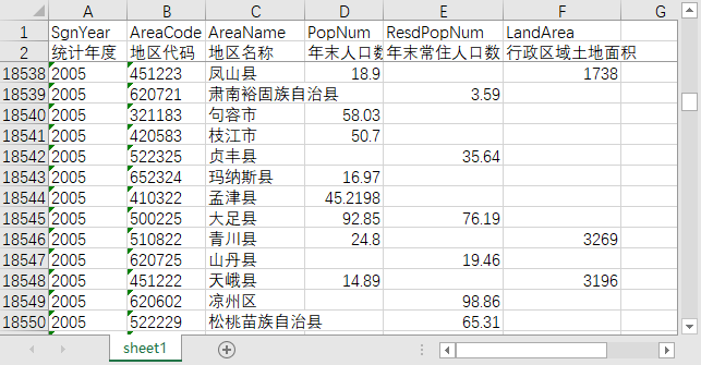 统计年度 地区代码 地区名称 年末人口数 年末常住人口数 行政区域土地面积