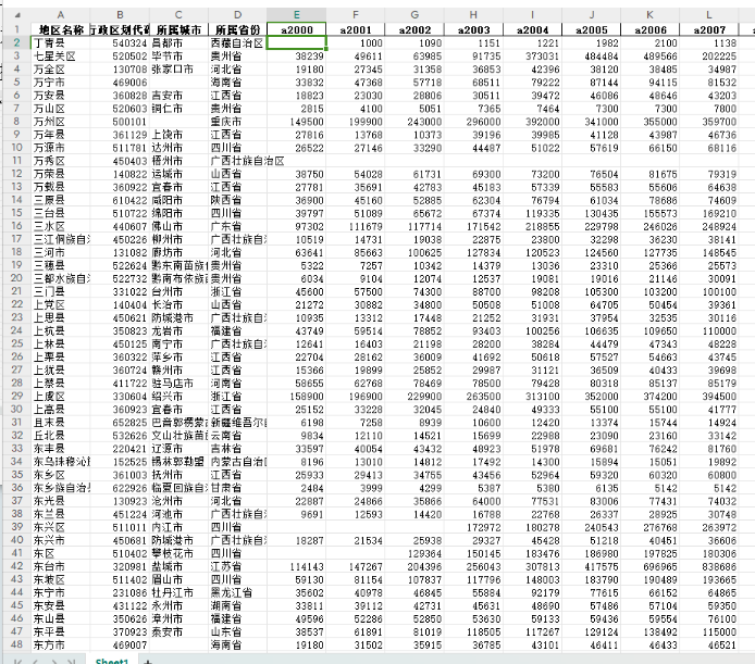 全国2000+县(区)农业和工业数据Excel+shp(2000-2022年)