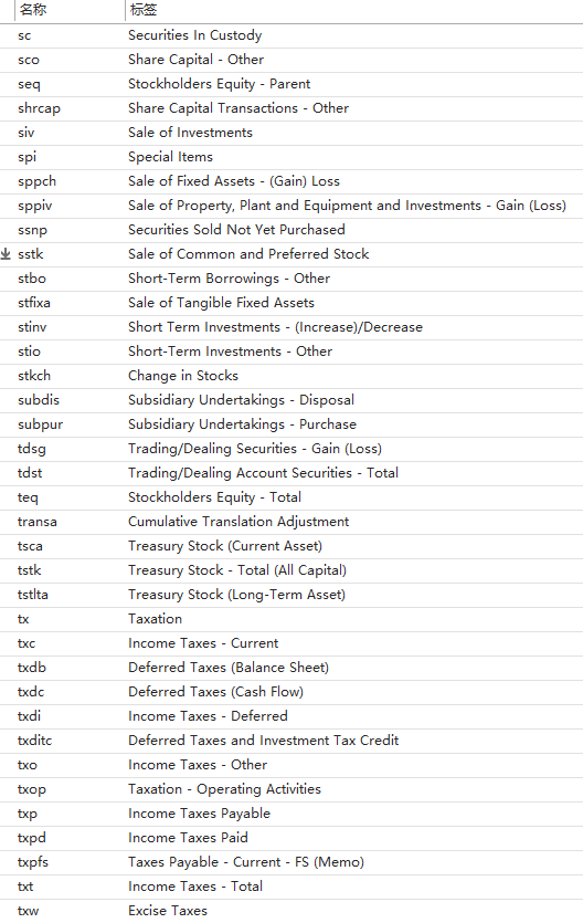 - **指标内容**:这些指标涵盖了诸如资产、负债、股东权益、收入、利润等财务报表的主要组成部分,还包括现金流量、经营比率和市场数据。