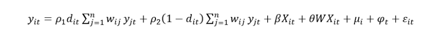 基于传统空间杜宾模型的不足,两区制空间杜宾模型应运而生。拓展的两区制空间计量模型可有效解决传统空间计量的不足。