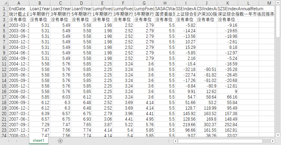 统计截止日期 1年期银行短期贷款利率(%) 3年期银行短期贷款利率(%) 5年期银行短期贷款利率(%) 1年期银行定期存款利率(%) 3年期银行定期存款利率(%) 5年期银行定期存款利率(%) 国资委版加权平均资本成本(%) 上证综合指数一年市场回报率(%) 沪深300指数一年市场回报率(%) 深证综合指数一年市场回报率(%)