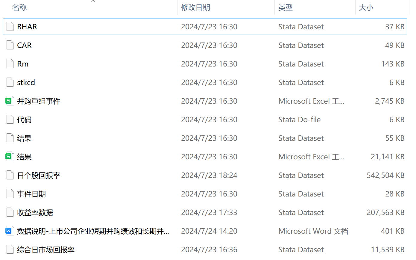 数据名称:上市公司并购数据汇总及短期并购绩效和长期并购收益数据及DO文档08-22年