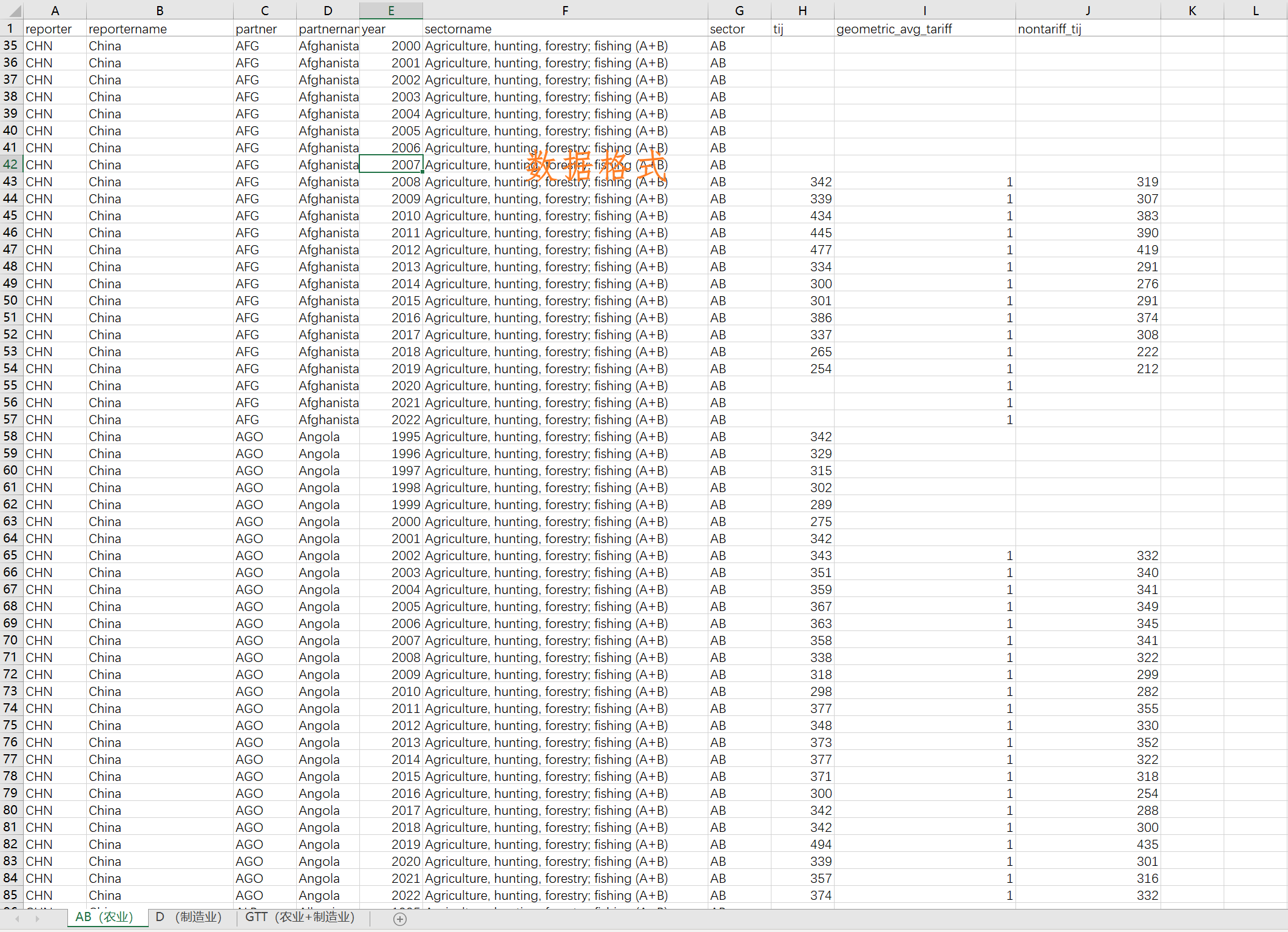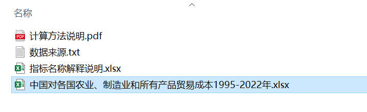 中国对各国贸易成本,包括1995-2022年中国对各国农业贸易成本、制造业贸易成本和所有产品贸易成本