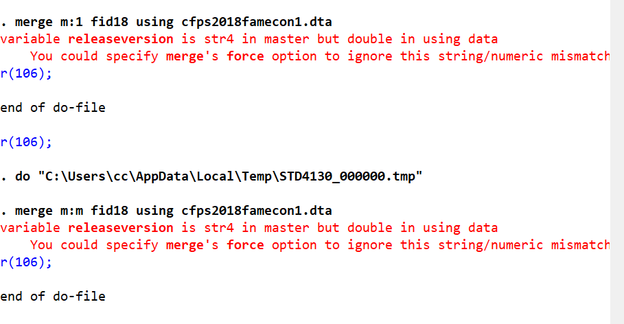 大家好,我在使用2016年的CFPS数据,将家庭层面的数据合并到个人层面时,总是报错