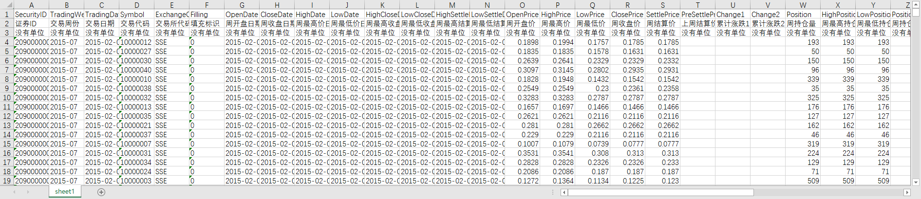 PreSettlePrice [上周结算价] - 上周zui后一个交易日的结算价