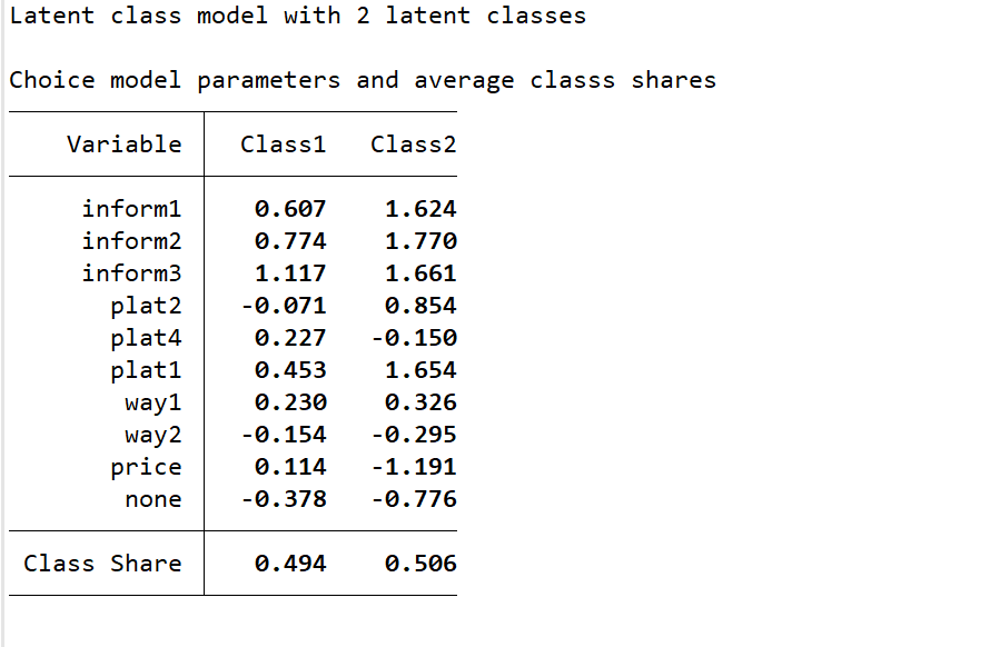 olympic 发表于 2024-7-25 21:08 LCM(Latent Class Model)模型分类用lclogitwtp2命令计算WTP(Willingness to Pay)时,如果出现“last e ...