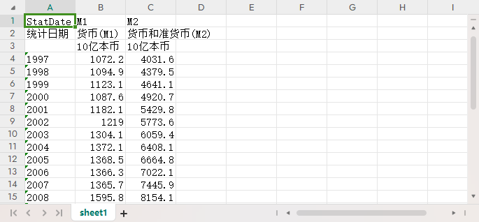 统计日期 货币(M1) 货币和准货币(M2)