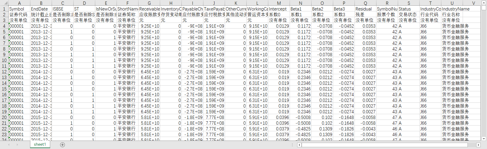 SymbolNum [股票个数] - 同年度同行业参与计算的股票数量,制造业“C”字头代码取2位,其他行业取1位,进行行业分类。