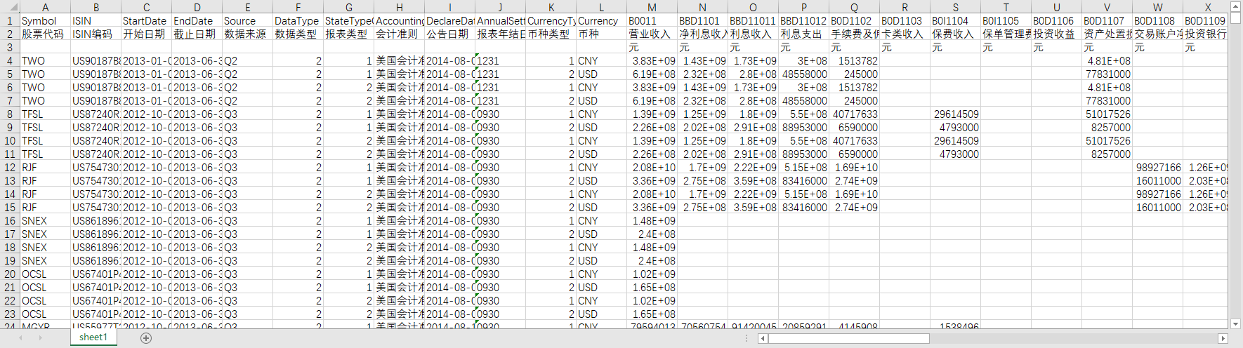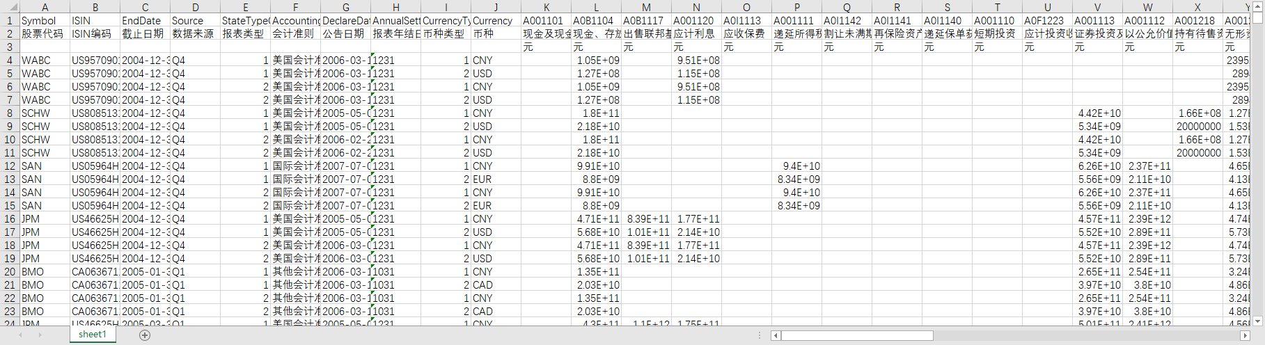 美股美国纽约纳斯达克上市公司金融行业资产负债表2004-202309现金流量表利润表