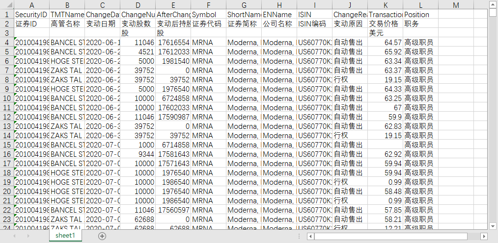ChangeReason [变动原因] - 售出,行权,买入,自动售出,股息再投资,收购(非公开市场),自动买入,转让(非公开市场)