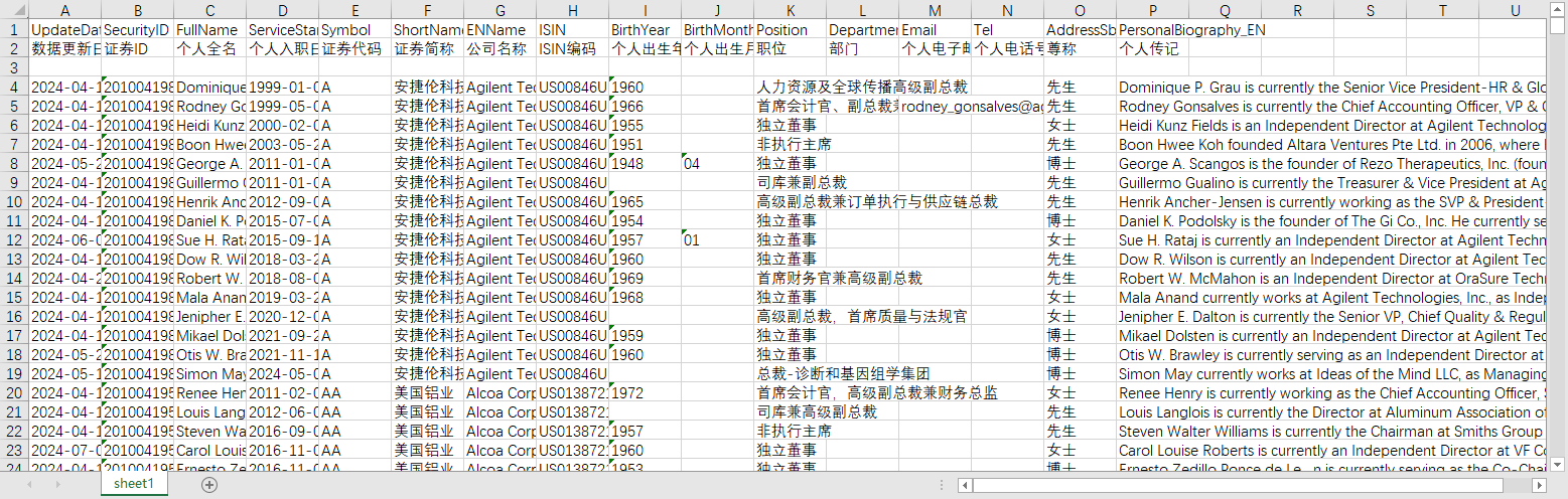 美股美国纽约纳斯达克上市公司董事高管信息表1949-202406出生年月职位高管持股情况表2011-202407