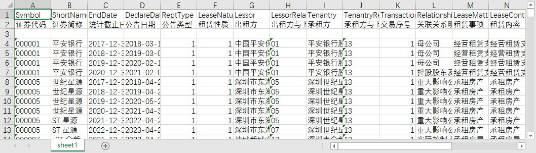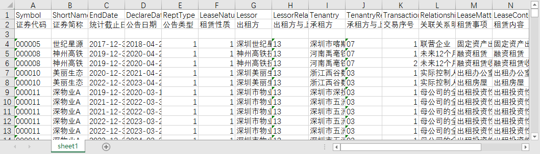 LeaseNature [租赁性质] - 1=与上市公司的租赁交易:上市公司直接参与的租赁交易;2=与上市公司的关联公司之间的租赁交易:上市公司的关联方(如子公司、孙公司等)参与的租赁交易,上市公司本身不直接参与;直接参与是指:作为租赁交易的出租方或者承租方;
