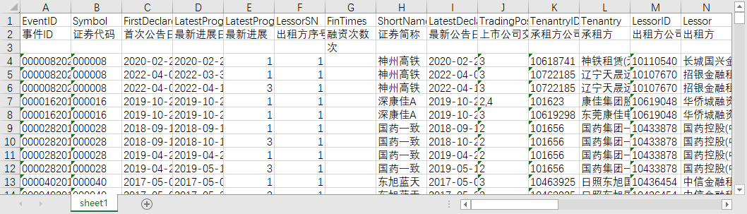 LessorSN [出租方序号] - 若相同事件ID下(即相同的承租方),承租方向不同的出租方(非联合出租方)进行融资,则分别记录,用序号进行区分;