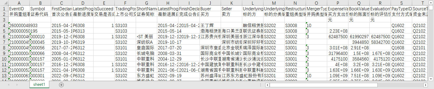 EventID [并购重组事件ID] - 并购重组事件ID与本库其他表的融资租赁事件ID,不能相互关联,该表的并购重组事件ID可以与并购重组库进行关联