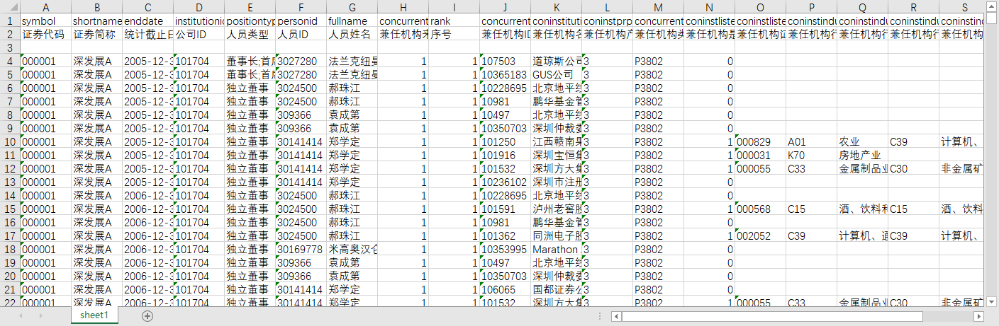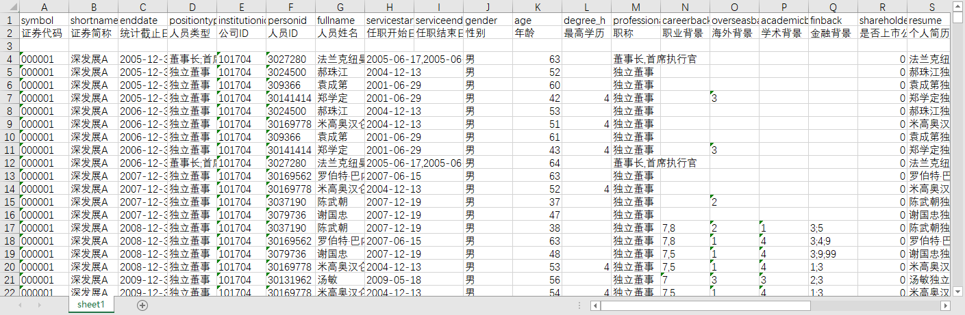 证券代码 证券简称 统计截止日期 人员类型 公司ID 人员ID 人员姓名 任职开始日期 任职结束日期 性别 年龄 最高学历 职称 职业背景 海外背景 学术背景 金融背景 是否上市公司股东 个人简历 兼任机构数量 兼任机构中上市公司数量 兼任机构涉及行业A数量 兼任机构涉及同行业A数量 兼任机构涉及非同行业A数量 兼任机构涉及行业B数量 兼任机构涉及同行业B数量 兼任机构涉及非同行业B数量 兼任机构是否涉及金融行业 兼任机构是否涉及院校