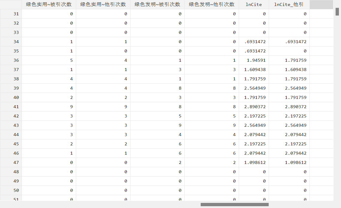 - 绿色创新质量(lnCite):借鉴 Rong 等的做法,选择绿色专利的引用量衡量绿色技术创新的质量(lnCite)。对企业绿色专利的申请量和绿色专利的引用量加1后取自然对数处理。
