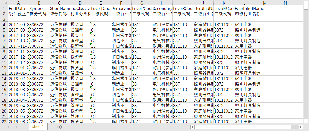 FourthIndName [四级行业名称] - 与代码对应的中文名称。