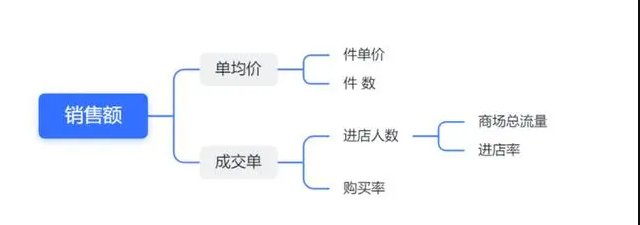 我们将销售额拆出来两个二级指标,四个三级指标,两个四级指标,基本上已经到了能够展示数据&且指标不重合的最细维度。