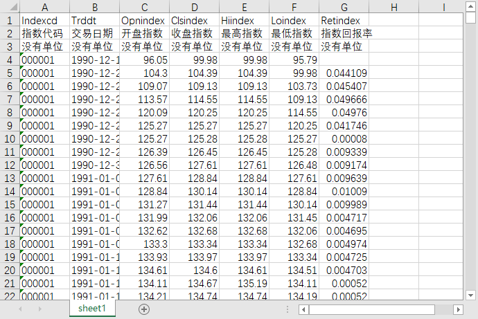 指数代码 交易日期 开盘指数 收盘指数 最高指数 最低指数 指数回报率