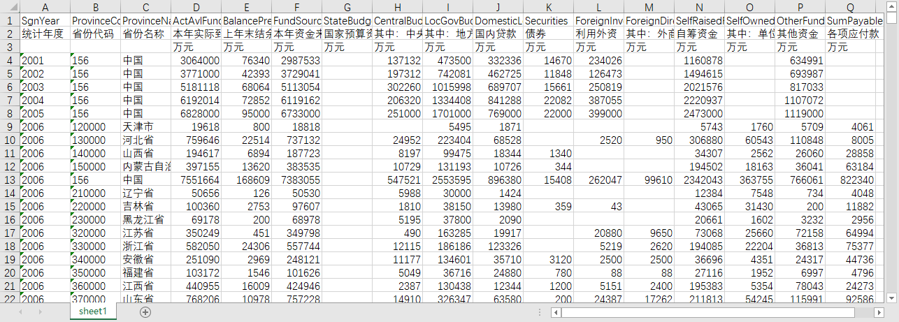 省份县城市政公用设施建设固定资产投资2001-2022供水燃气供热道路桥梁排水园林绿化防洪按资金来源分国家资金国内贷款债券利用外资自筹资金地方财政拨款