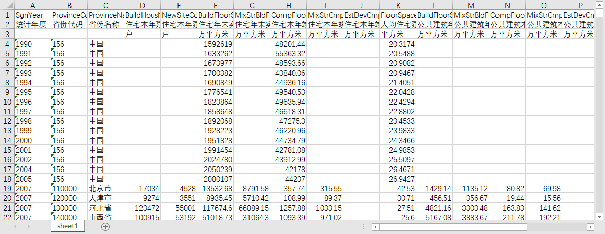 全国分省份村庄房屋情况表1990-2022住宅人均住宅建筑面积公共生产性建筑竣工建筑面积