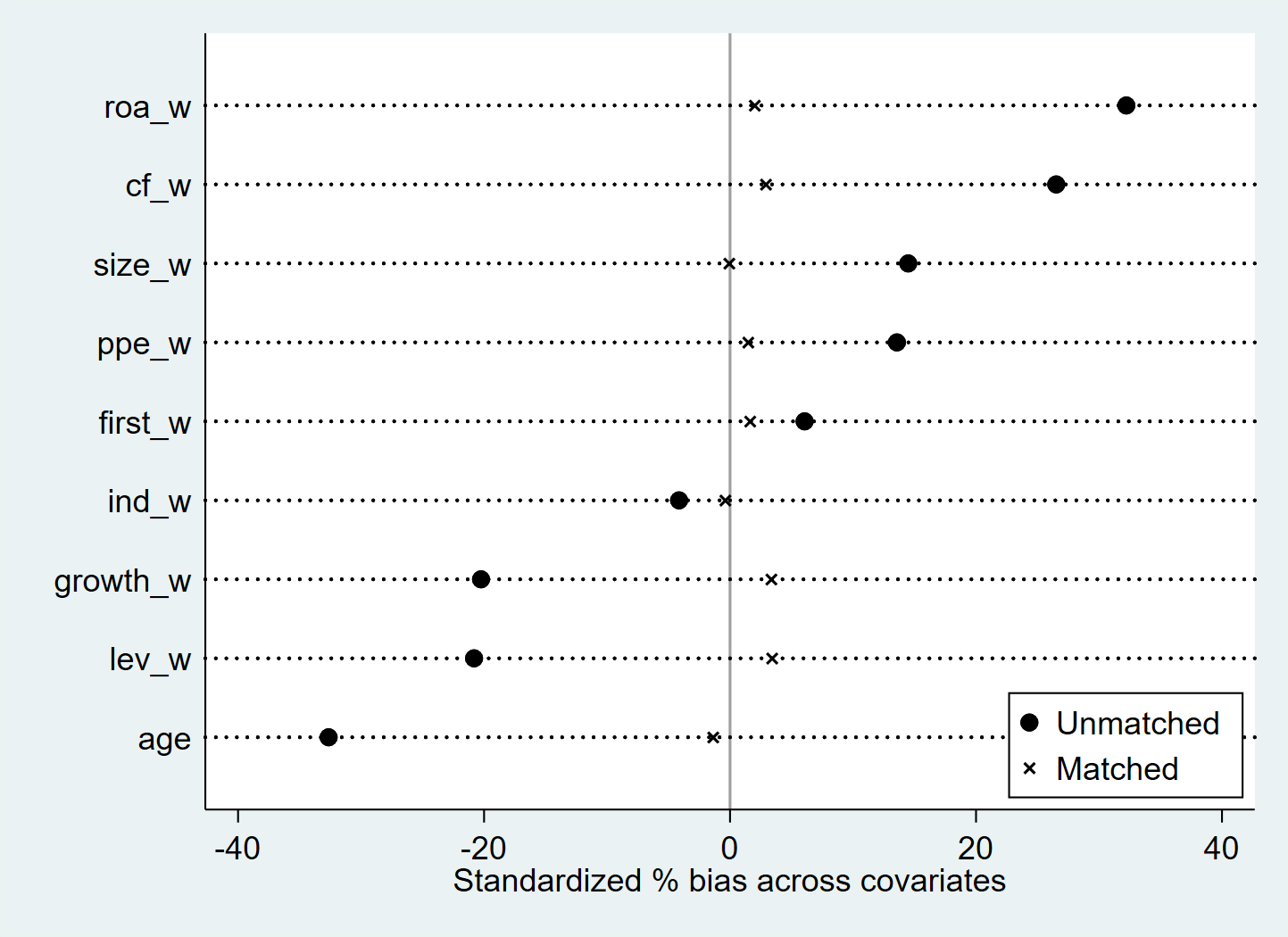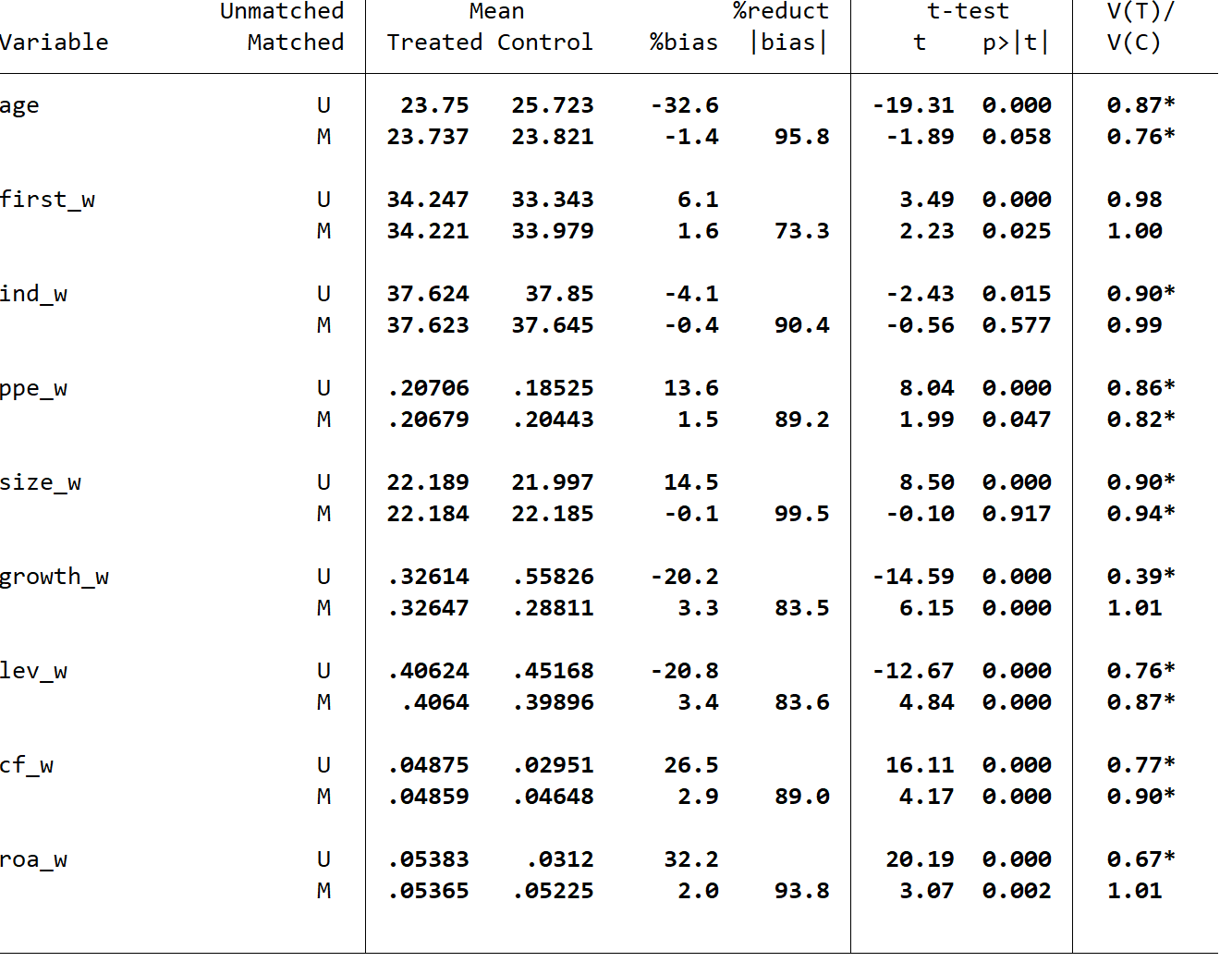 3. **使用共变量**:在匹配过程中加入更多或不同的共变量可能会改善匹配结果。考虑是否有其他重要的协变量未被包括在内,或者重新评估已有的共变量是否以最优的方式被处理(例如,将连续变量转换为分类变量)。
