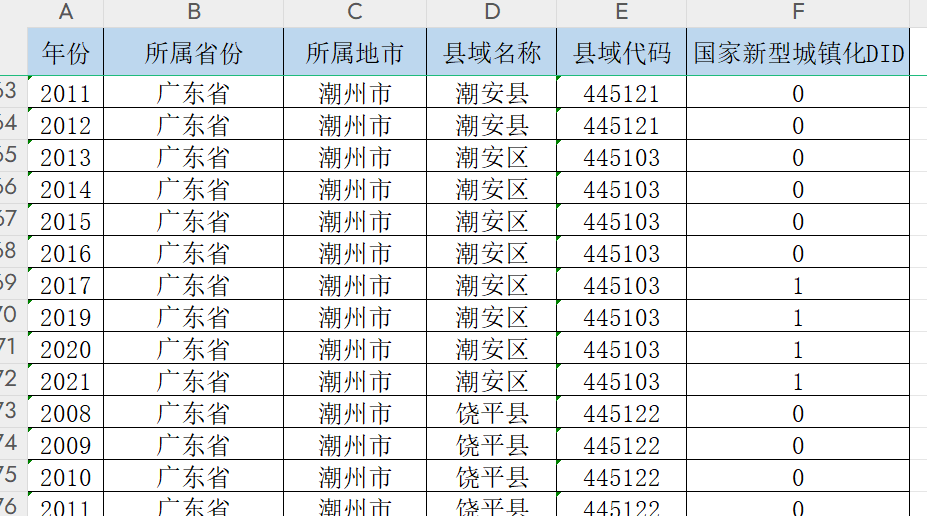 县域DID数据,不包括试点镇