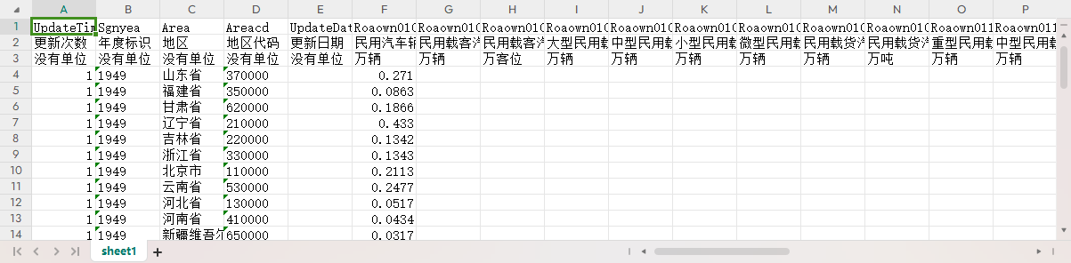 全国分省份各地区民用和私人车辆拥有量1949-2022民用汽车辆数总计民用载客汽车辆数民用载客汽车客位大型民用载客汽车辆数中型民用载客汽车辆数小型民用载客汽车辆数微型民用载客汽车辆数民用载货汽车辆数民用载货汽车吨位重型民用载货汽车中型民用载货汽车