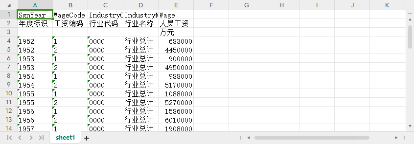 年度标识 工资编码 行业代码 行业名称 人员工资