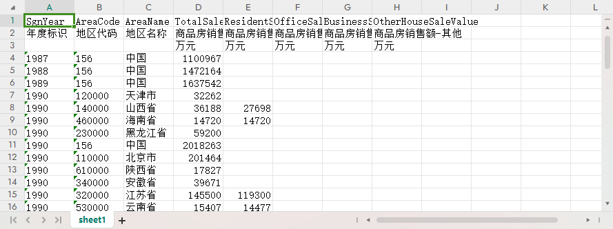 年度标识 地区代码 地区名称 商品房销售额 商品房销售额-住宅 商品房销售额-办公楼 商品房销售额-商业营业用房 商品房销售额-其他