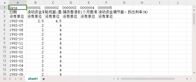 日期 流动资金调节机制:借入利率(%) 贴现窗:基本利率(%) 隔夜香港银行同业拆出利率(%) 1个月香港银行同业拆息定价(%) 流动资金调节窗:拆出利率(%)