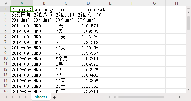 交易日期 拆借货币 拆借期限 拆借利率(%)