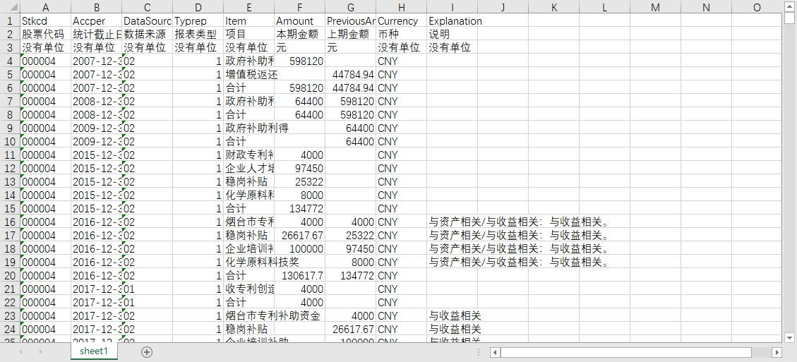 PreviousAmount [上期金额] - 政府补助明细项目上期金额数