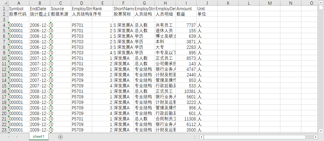 股票代码 统计截止日期 数据来源 人员结构编码 序号 股票简称 人员结构 人员明细 数量 单位