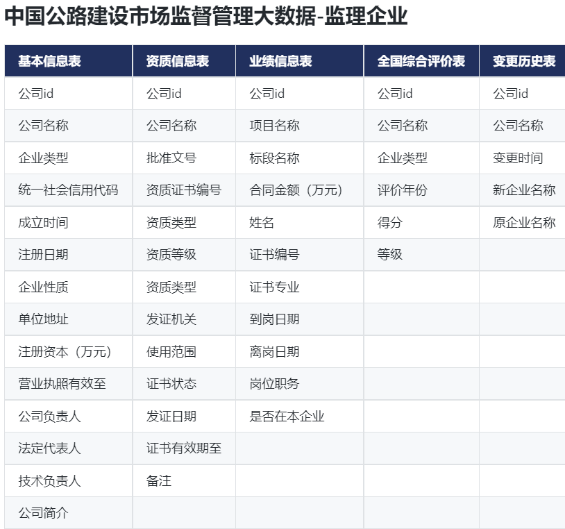 CnOpenData中国公路建设市场监督管理大数据.zip